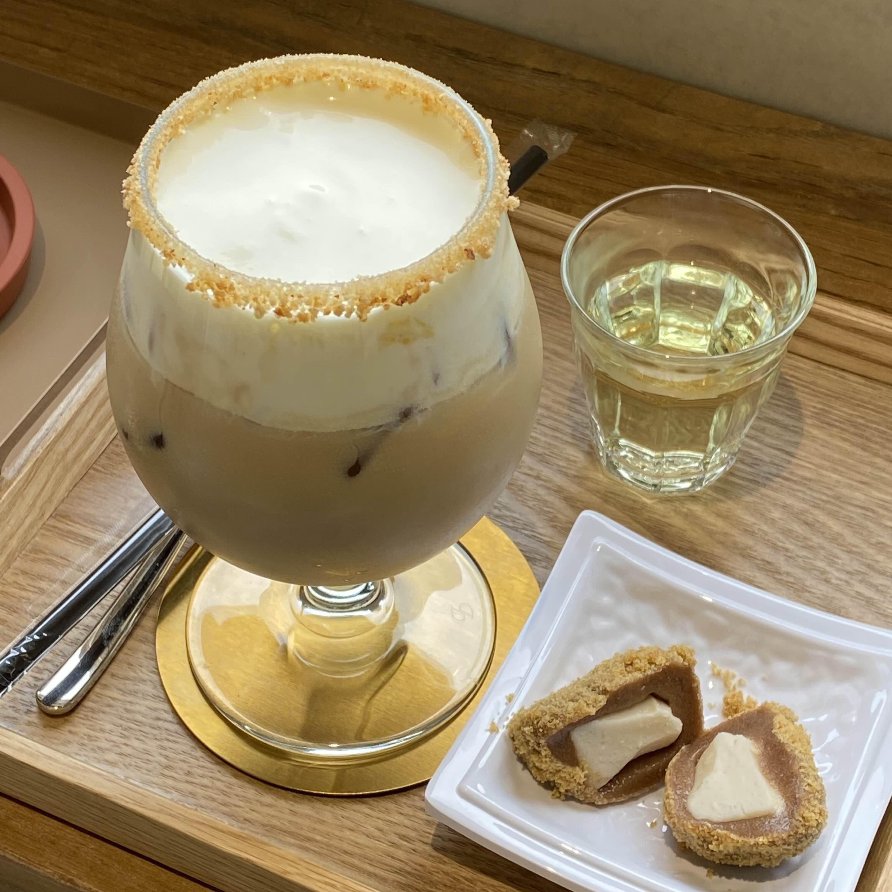 버터카라멜크림라떼는 사진만 봐도 느껴지듯 달고 부드럽고 느끼한 맛입니다. 게다가 입구에 카라멜설탕? 같은 것도 묻혀주셔서 단 음료 좋아하시는 분들에게는 극호가 아닐까 싶어요! 이미 배부른 상태에서 가시는 거라면 비추, 당이 부족할 때나 배고플 때, 혹은 차도 마시고 싶고 커피도 마시고 싶고 떡도 먹고 싶을 때는 추천!
